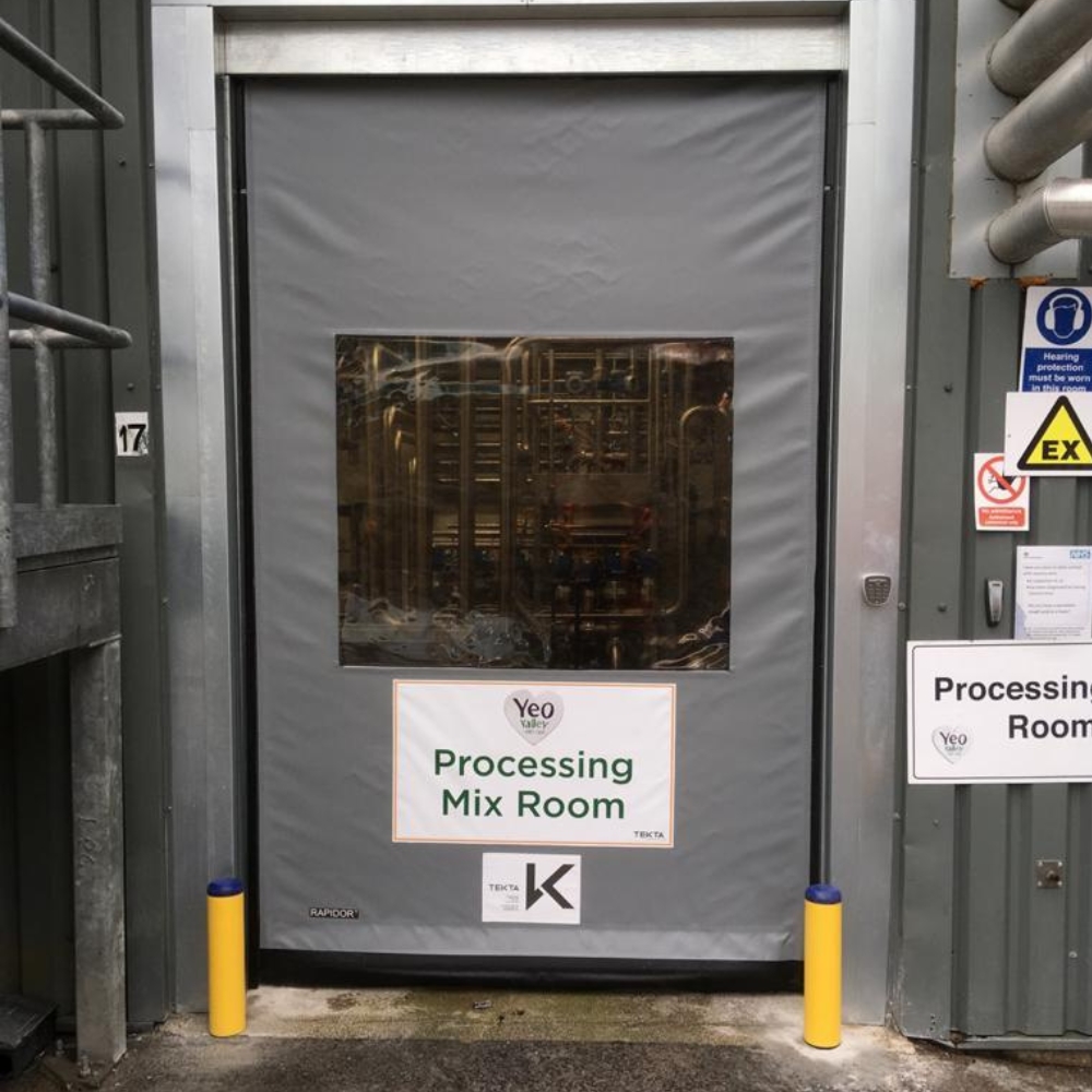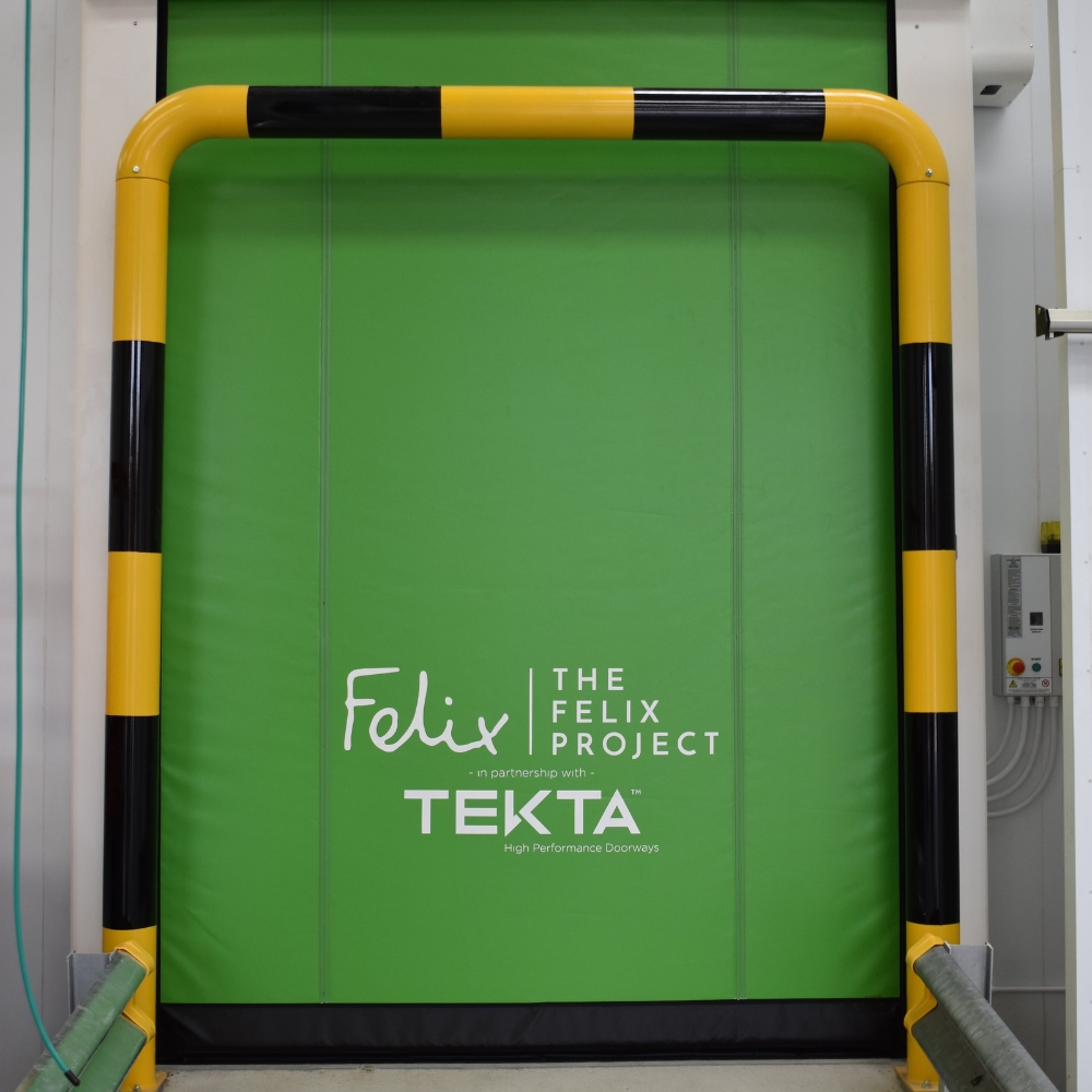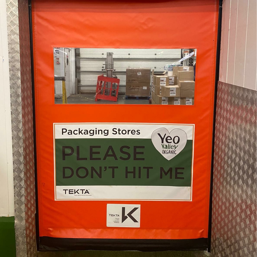 With over 20 years experience in installing high speed doors for food and pharmaceutical brands, the Tekta design team has been involved in creating a wide range of bespoke solutions. One popular (and hygienic) option for bespoke design is digitally printed artwork on high speed door curtains.