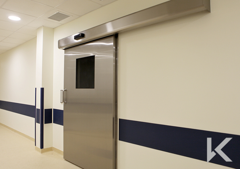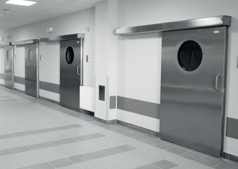 The Sanidor Glide range of sliding hygiene doors are purpose-built to provide exceptional cleanliness and performance in hygiene-critical areas, such as laboratories, clean rooms and pharmaceutical factories. Suitable for internal and external applications, the doors are constructed from high-grade steel leaves with a high-density injected foam core. All joints are fully welded, ensuring the doors are rigid and preventing the ingress of bacteria or fluids inside the leaf.